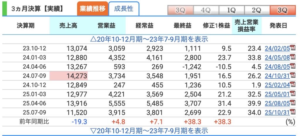 2025年10月31日、3Q決算が発表されました。