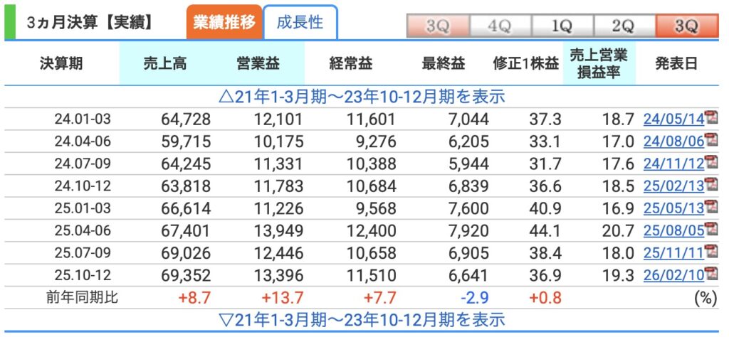 2026年2月10日、3Q決算が発表されました。