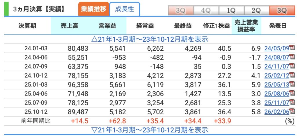 2026年2月1日、3Q決算が発表されました。
