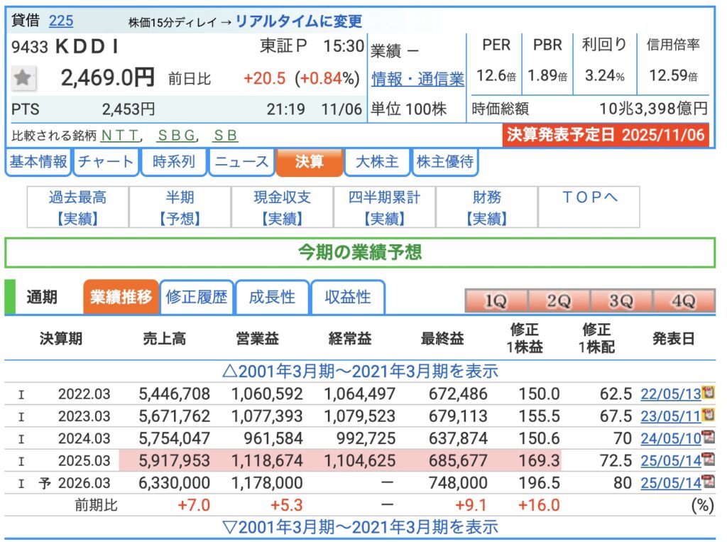 KDDI(9433)の決算確認