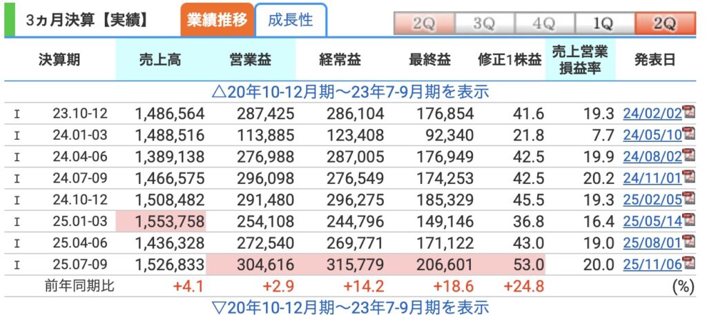 2025年11月6日、2Q決算が発表されました。