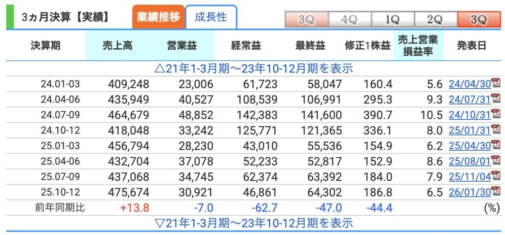第三四半期の利益は第二四半期の半分以下となっており、予想通り急ブレーキがかかっています。
