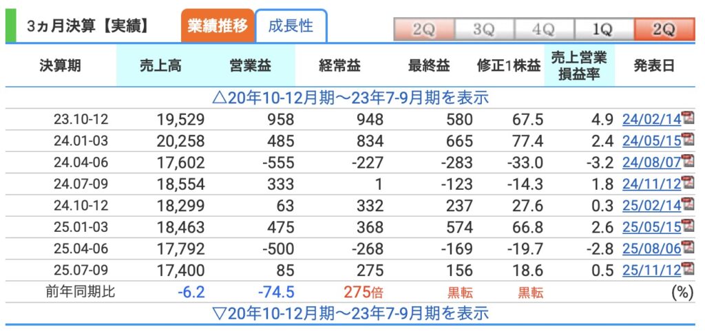 2025年11月12日、2Q決算が発表されました。