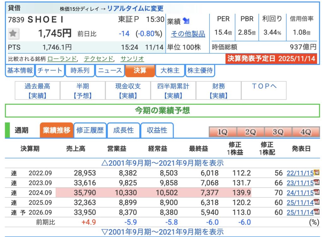 2024年11月15日、2025年9月期業績予想が発表されました。