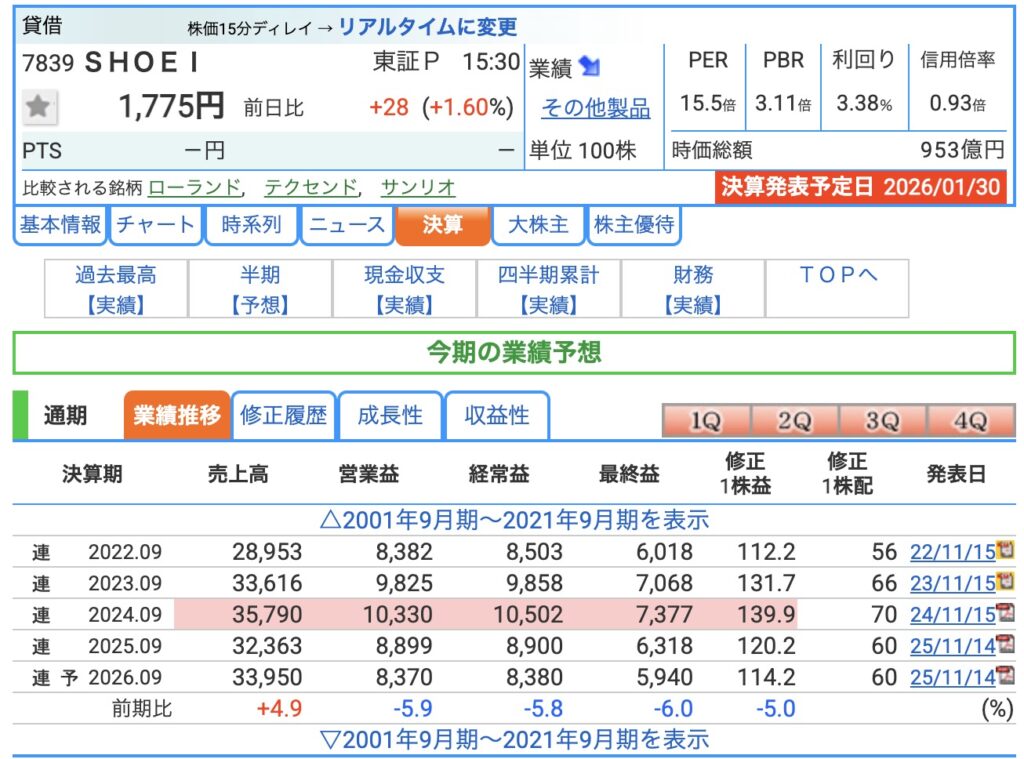 2024年11月15日、2025年9月期業績予想が発表されました。